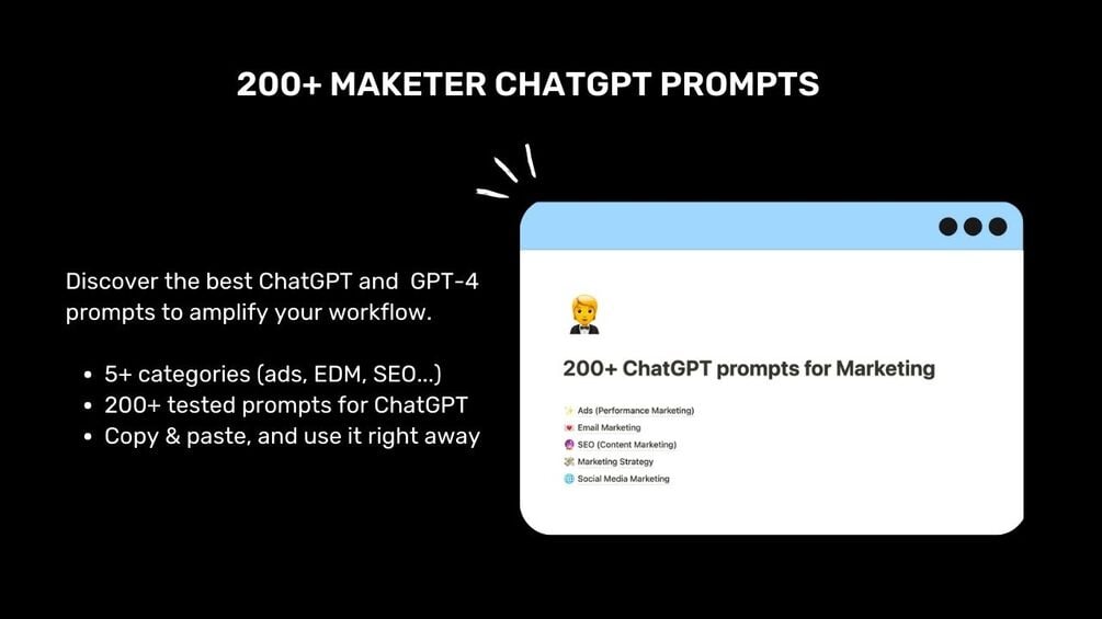 Introducing the "200+ GPT-4 Prompt Pack for Marketer " - the ultimate game-changer for your workspace productivity. 🚀 Our handpicked, GPT-4 crafted prompts will help you: