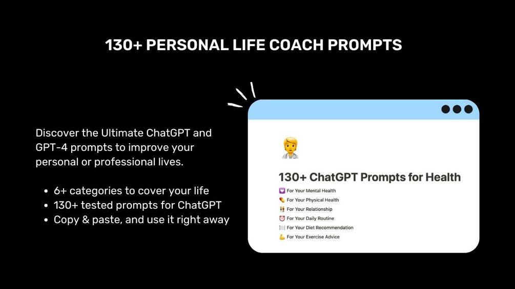 Tap into AI potential to navigate challenges and find greater contentment, with the 130+ Personal Life Coach Prompts.